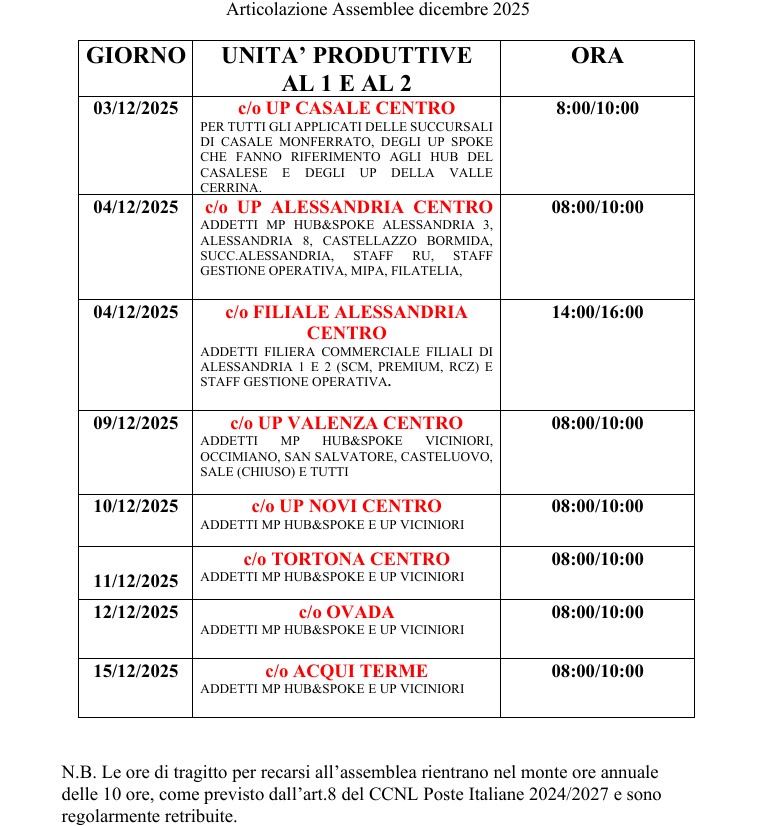 svolgimento delle assemblee in ambito MP nelle date indicate nell’articolazione allegata: